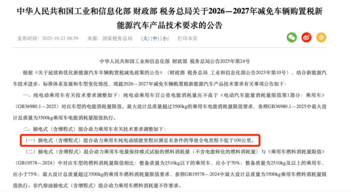 出现这种场面并不令人意外,就在10月9日,工信部、财政部、税务总局联合发布了《关于2026—2027年减免车辆购置税新能源汽车产品技术要求的公告》(以下简称《公告》),即将对新能源汽车购置税减免政策的技术标准进行全面升级。
